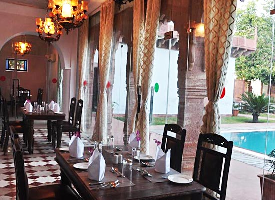 Along with Peharsi Andaaz, the on-site restaurant, there are a number of other outdoor dining spaces in the Haveli, where the guests can savor lip-smacking delicacies of Indian and other popular world fares. Indian, Rajasthani, Continental, and Persian dishes are prepared using age-old recipes from the royal kitchen.